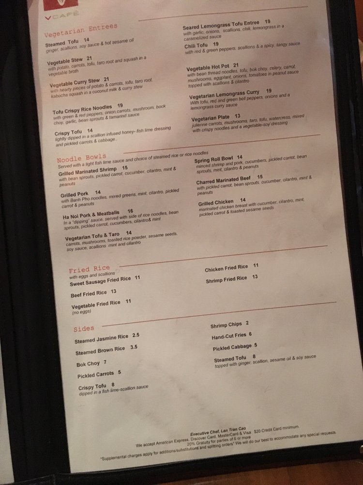 Customer reviews rave about the quick service and delectable offerings, such as the classic beef pho praised for its flavorful broth and thinly sliced beef. With amenities like outdoor seating and a full bar, VCafe is not just a place for a satisfying meal but a destination for a memorable dining experience. Don't miss out on this gem for your next lunch outing or casual dinner gathering.